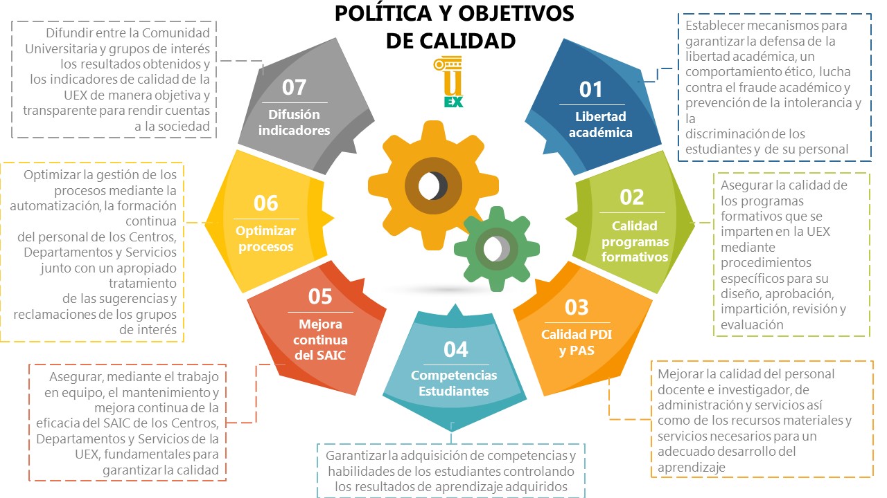 La política de calidad de la UEx se articula en torno a 7 grandes objetivos: